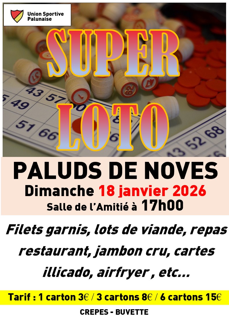 Le loto sera organisé au Paluds de Noves, dans la salle de l’Amitié et au Café du Siècle à 17h00.